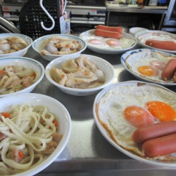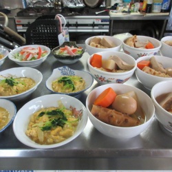10月10日金曜日、今日のお昼御飯です。主菜は「ソーセージエッグ」副菜は「蕪の葉の納豆和え」「チャプスイうどん」「里芋と竹輪の炊き合わせ」の中から選んでもらいます。汁物は「モヤシと薄揚げの味噌汁」になりました。今日のカウンター上です。左には里芋の煮物が大鉢に ...