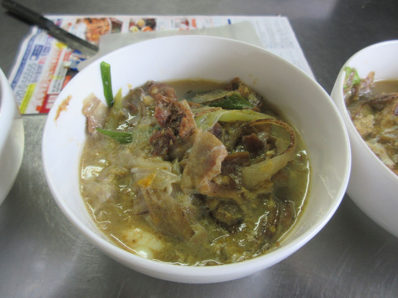 10月4日土曜日、今日のお昼御飯です。主菜は「肉柳川」副菜は「茄子の煮物」「菜っ葉の納豆和え」「なめこおろし」「鶏とねぎの炒め物」「法連草のおひたし」のどれかです。汁物は「キノコ汁」になりました。