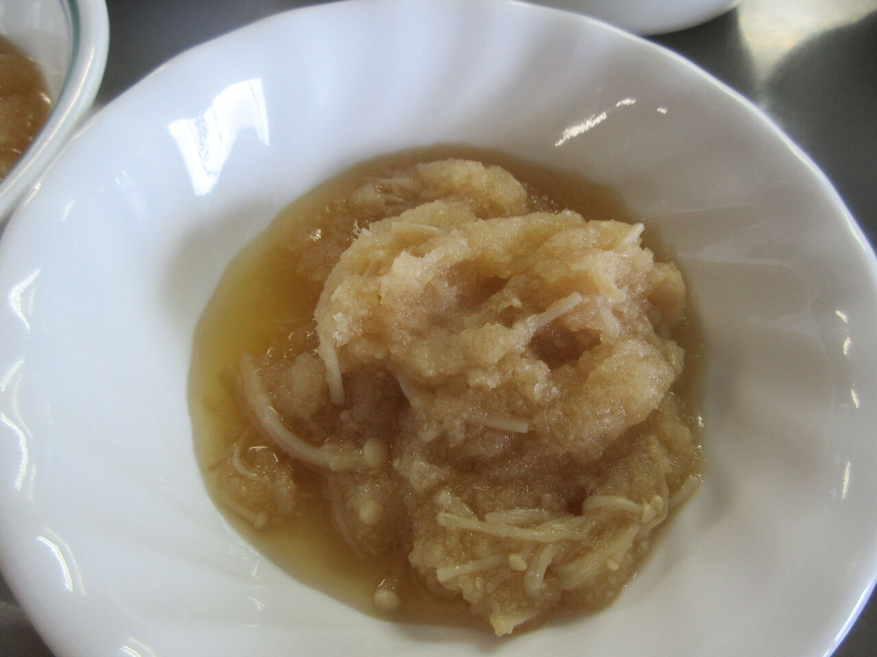 昨日作ったなめこおろしが残っていたので今日も副菜として出してあります。