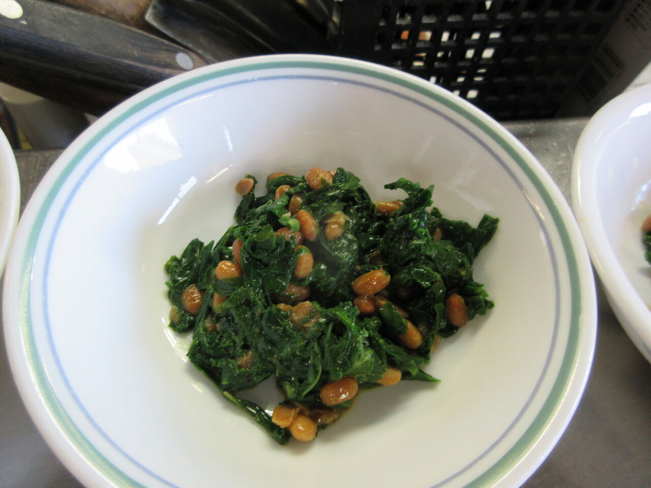 10月17日金曜日、今日のお昼御飯です。主菜は「白菜のシーフードシチュー」副菜は「蕪の葉の納豆和え」「三食盛りリメークおかず」「長いもとろろ」のどれかです。汁物は「大根のかす汁」になりました。