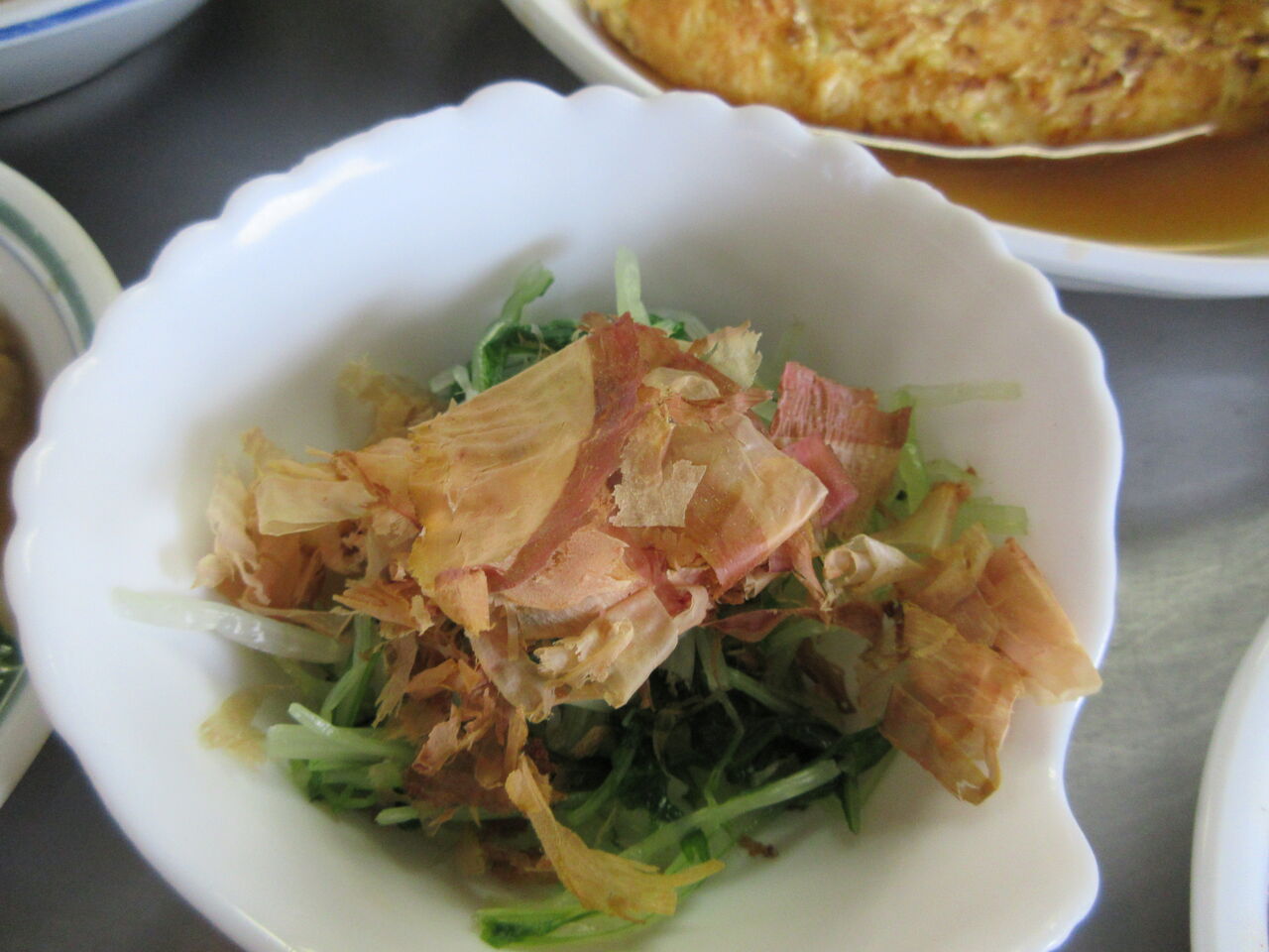 今日のカウンター上です。左にはおひたしがお代わり用として出ています。