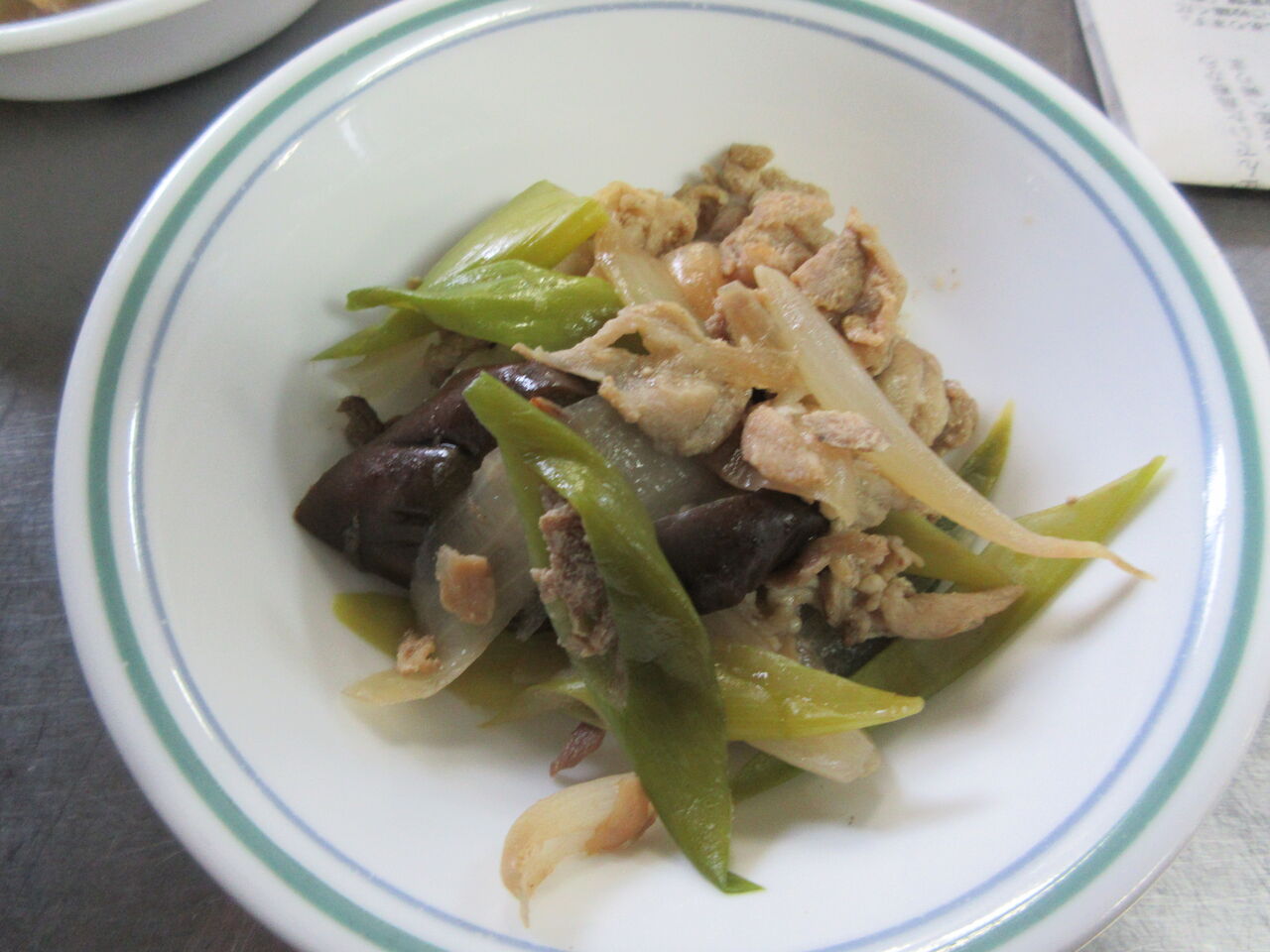 この連休中に作ったナスと玉ねぎ、長ナスと長ネギのオイスター炒めを副菜に使いました。