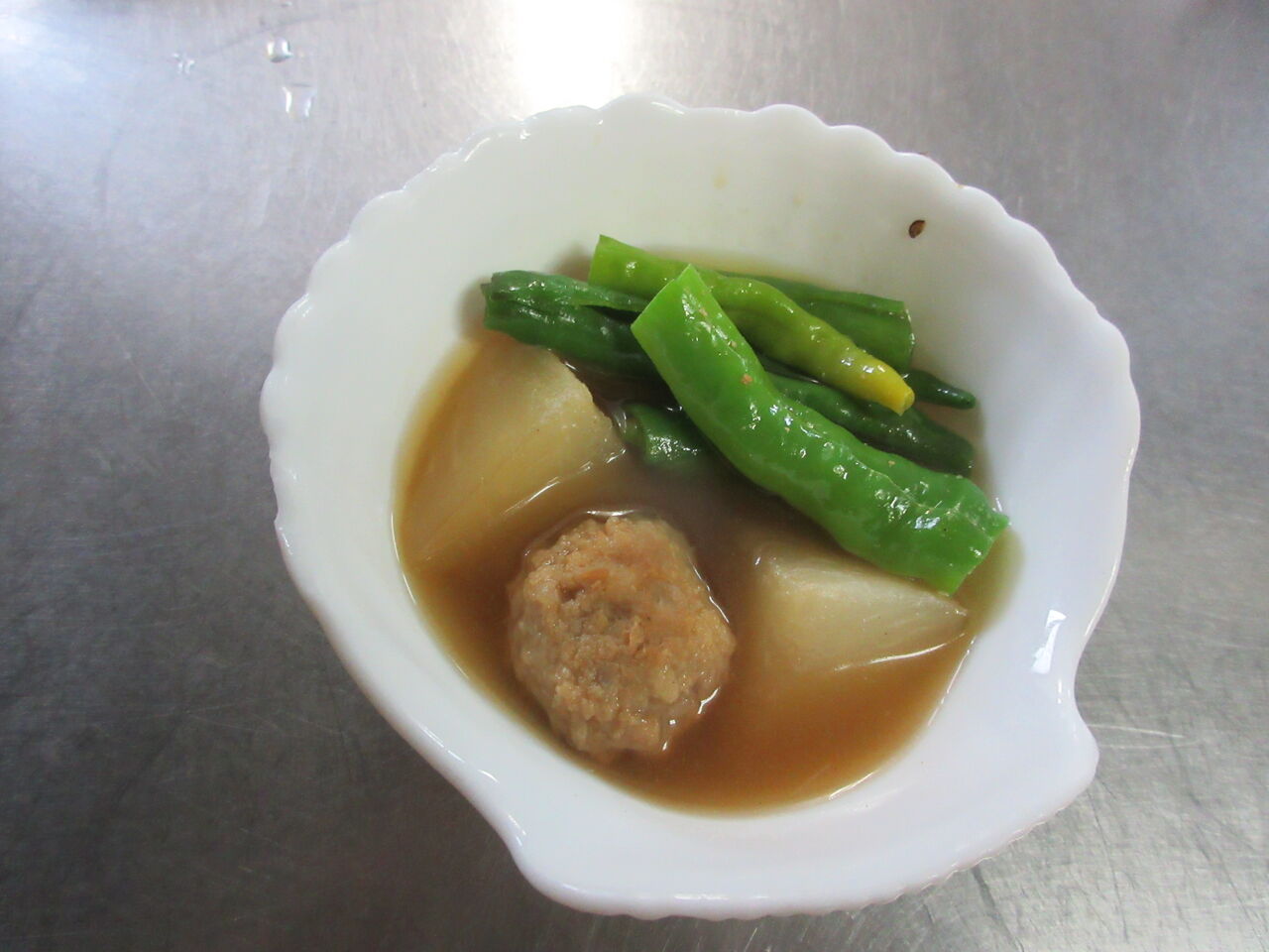 蕪と肉団子の煮物に甘長を炊き合わせています。