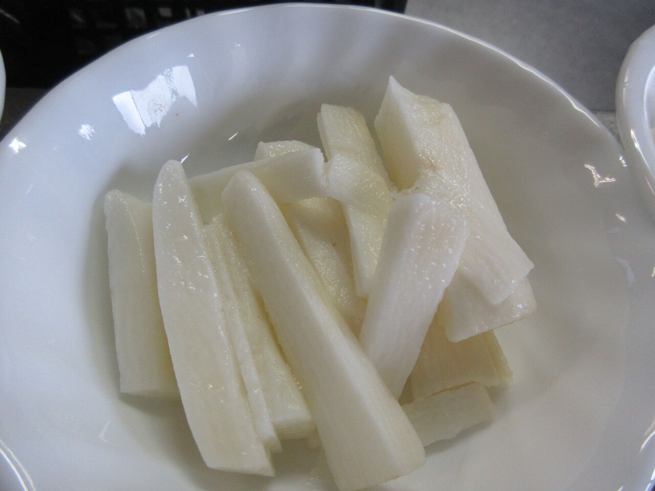 渡された長芋がある程度貯まったので皮をむいて短冊切りにしました。追いカツオつゆをかけて食べてもらいます。