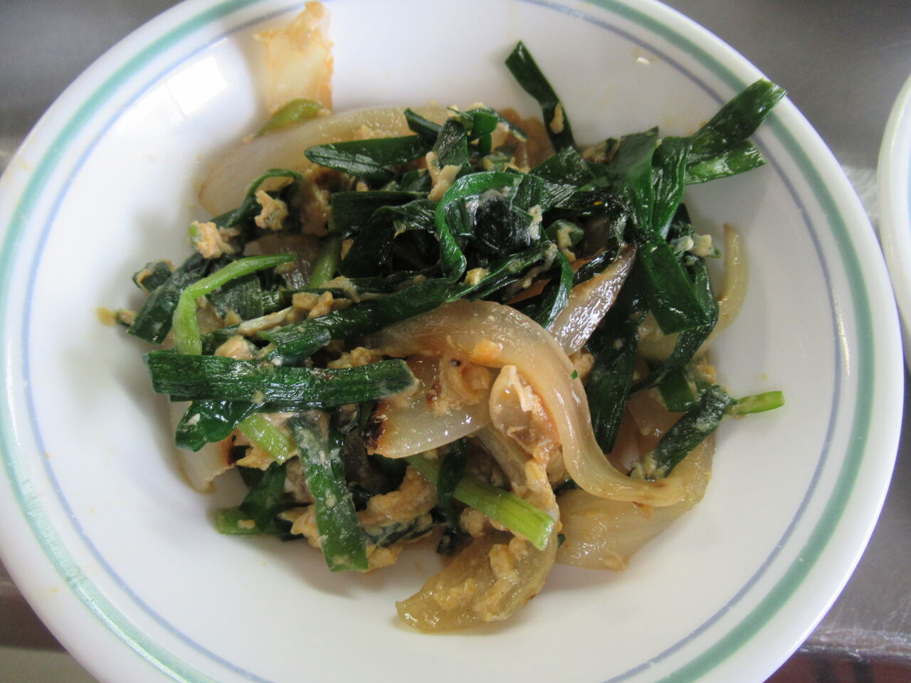 にら玉には玉ねぎも使っています。