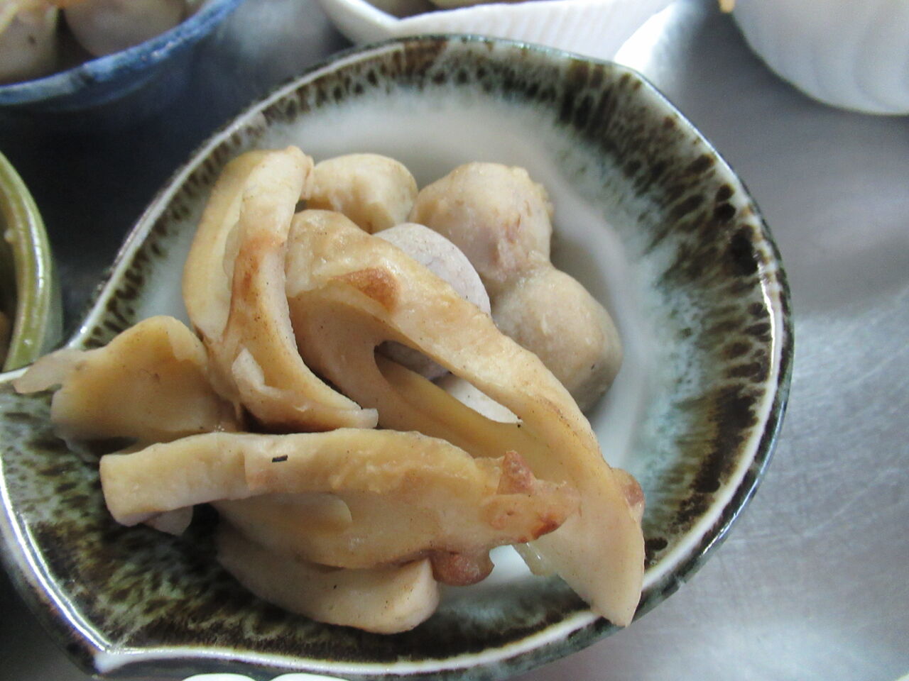松茸の煮汁で里芋を煮ました。竹輪も入れています。