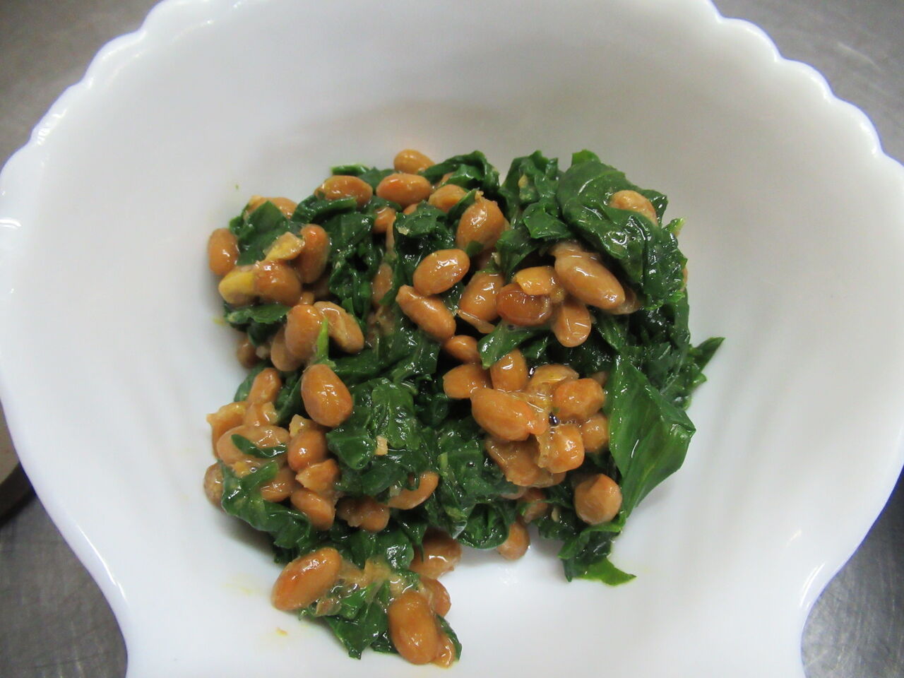 12月21日木曜日、今日のお昼御飯です。今日は松茸ご飯になりました。この時期に松茸ご飯?取引先に売れ残った外国産マツタケを買ってくれとかたなしかたなく松茸ご飯になりました。主菜は「目玉焼き」副菜は3種類の中から選んでもらいます。「和風スパゲティ」「里芋の煮物」「蕪の葉の納豆和え」です。汁物は「紅白のはんぺんの澄まし汁」です。