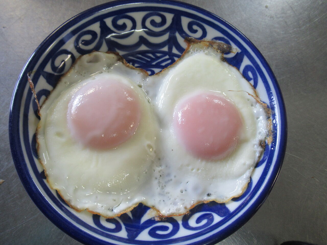 主菜の目玉焼きです。松茸ご飯にオンすると卵かけ風になります。