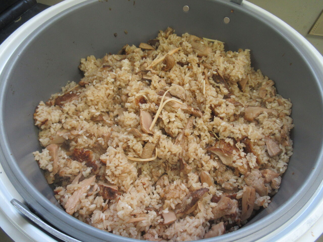 これは今日の松茸ご飯。3.2升の米に10kg近くの松茸が入っています。炊いてもめっこご飯になりがちで2度3度と炊飯しているので今日のご飯にはおこげが多いです。千切りショウガと松茸しか入っていません。