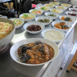 9月27日土曜日、今日のお昼御飯です。主菜は「麻婆ナス」副菜は「長いもとろろ」「菜っ葉の納豆和え」「金時豆」「かぼちゃの煮物」「カニ足スパゲティ」のどれかです。汁物は「玉ねぎと卵の味噌汁」になりました。今日のカウンター上です。麻婆ナスは加温プレートで温められ ...