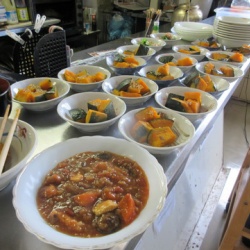 9月26日金曜日、今日のお昼御飯です。主菜は「金時豆のシチュー」副菜は「かぼちゃの煮物」か「ほうれん草のおひたし」のどちらかです。汁物は「大根のかす汁」になりました。今日のカウンター上です。シチューは加温プレートで温められています。シチューの具材はマッシュル ...