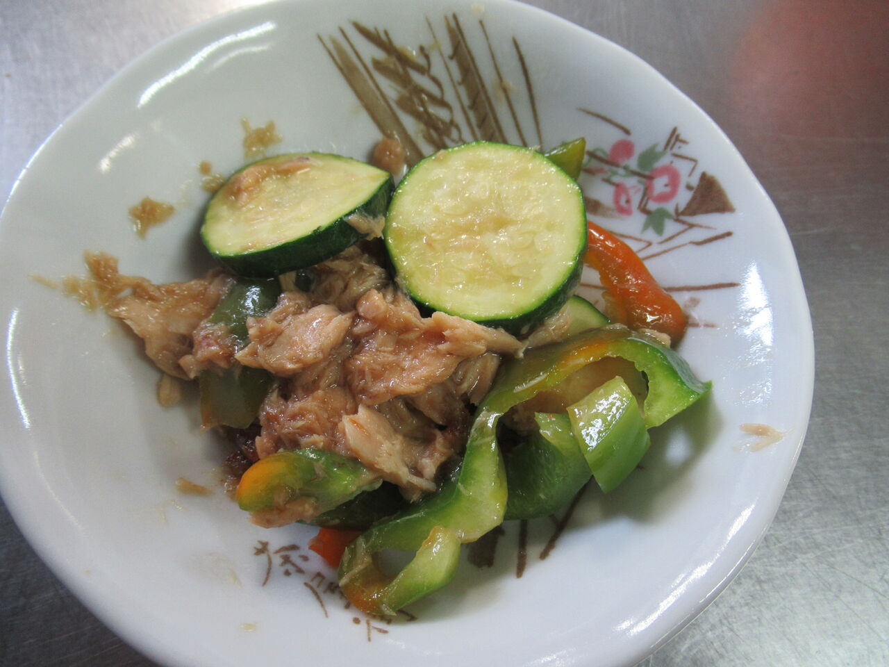 ズッキーニとピーマン、伏見甘長唐辛子をツナで炒め合わせオイスターソースで味付けしました。
