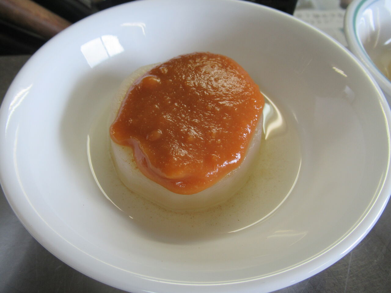 大根をだし汁で昨日から煮ておきました。甘味噌を作りとろりとかけています。