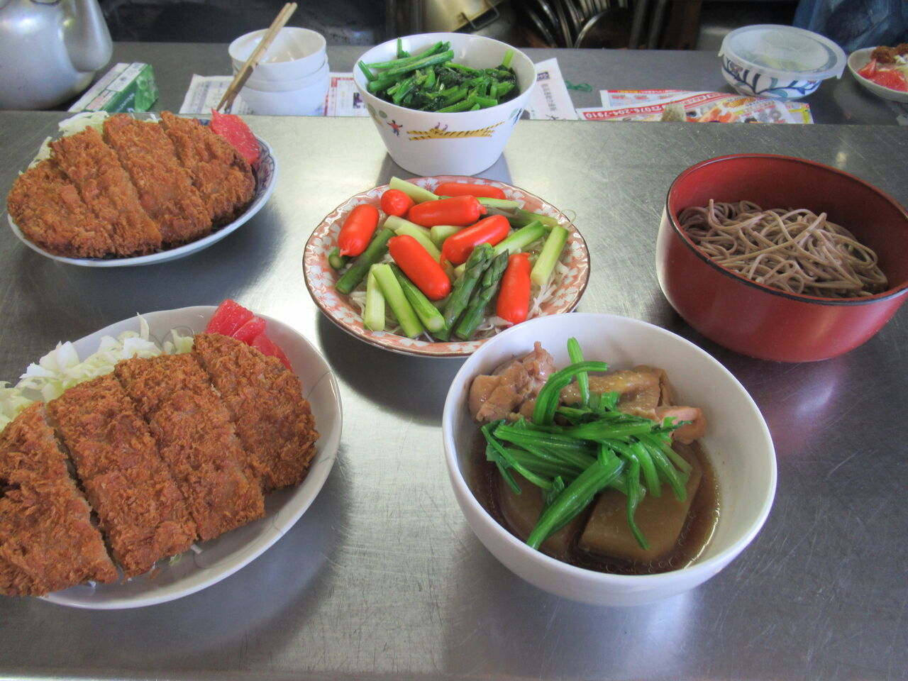 10月29日日曜日、今日のお昼御飯です。休日バージョンのお昼ご飯は「トンカツ」と「源助大根の煮物」です。麺は暖かい蕎麦にしました。