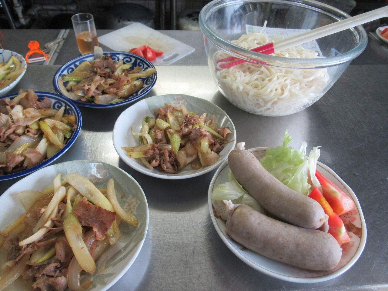 今日のカウンター上です。左に炒め物のお代わり用が出してあります。