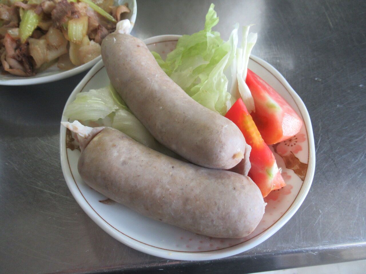 業務スーパーの売り出しでたまたま安く仕入れたチーズフランクを初めて使いました。一本が100gもあるので食べ応えは抜群です。レタスとトマトを添えています。