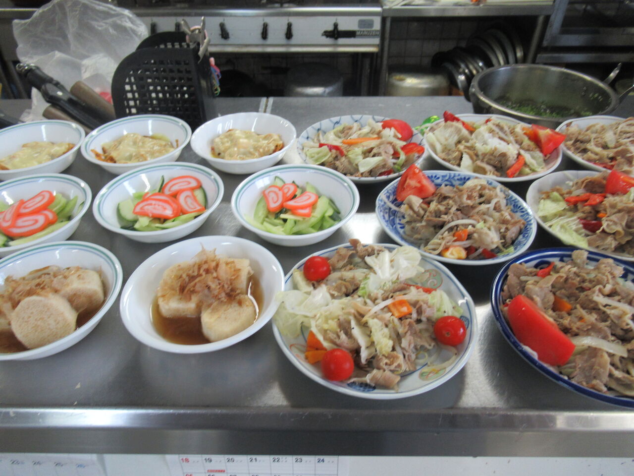10月7日月曜日、今日のお昼御飯です。前日の下ごしらえが要らないので今日は「野菜炒め」にしました。副菜は「スパゲティのグラタン風」「長芋の煮物」「胡瓜と赤巻きハベン」「セロリと赤巻き、薄揚げの炒め物」の中から選んでもらいます。汁物は「水炊き」の残りか「エノキと豆腐の味噌汁」を用意してあります。