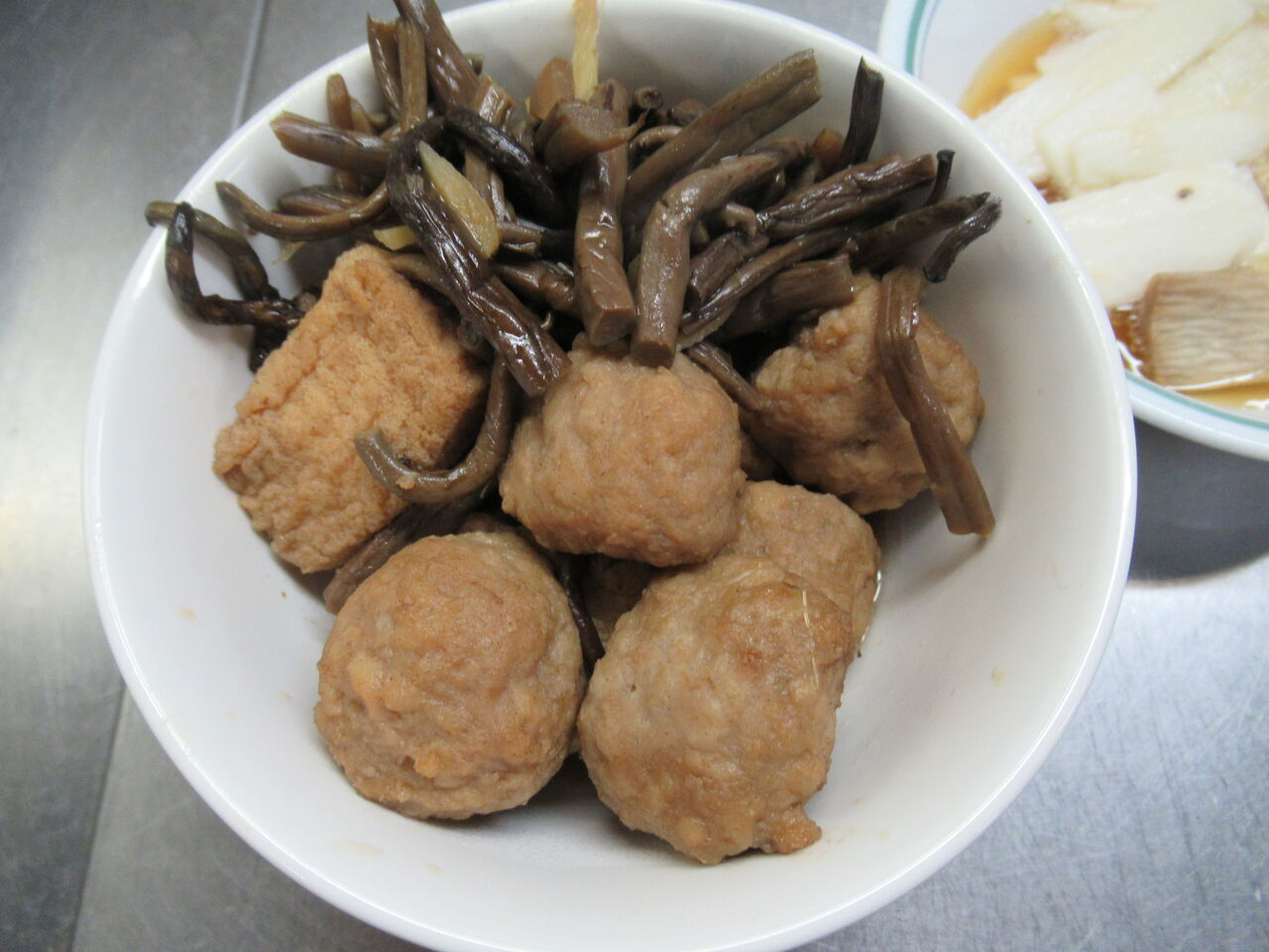 生揚げと肉団子、ゼンマイの煮物を魚嫌いの人に用意しました。
