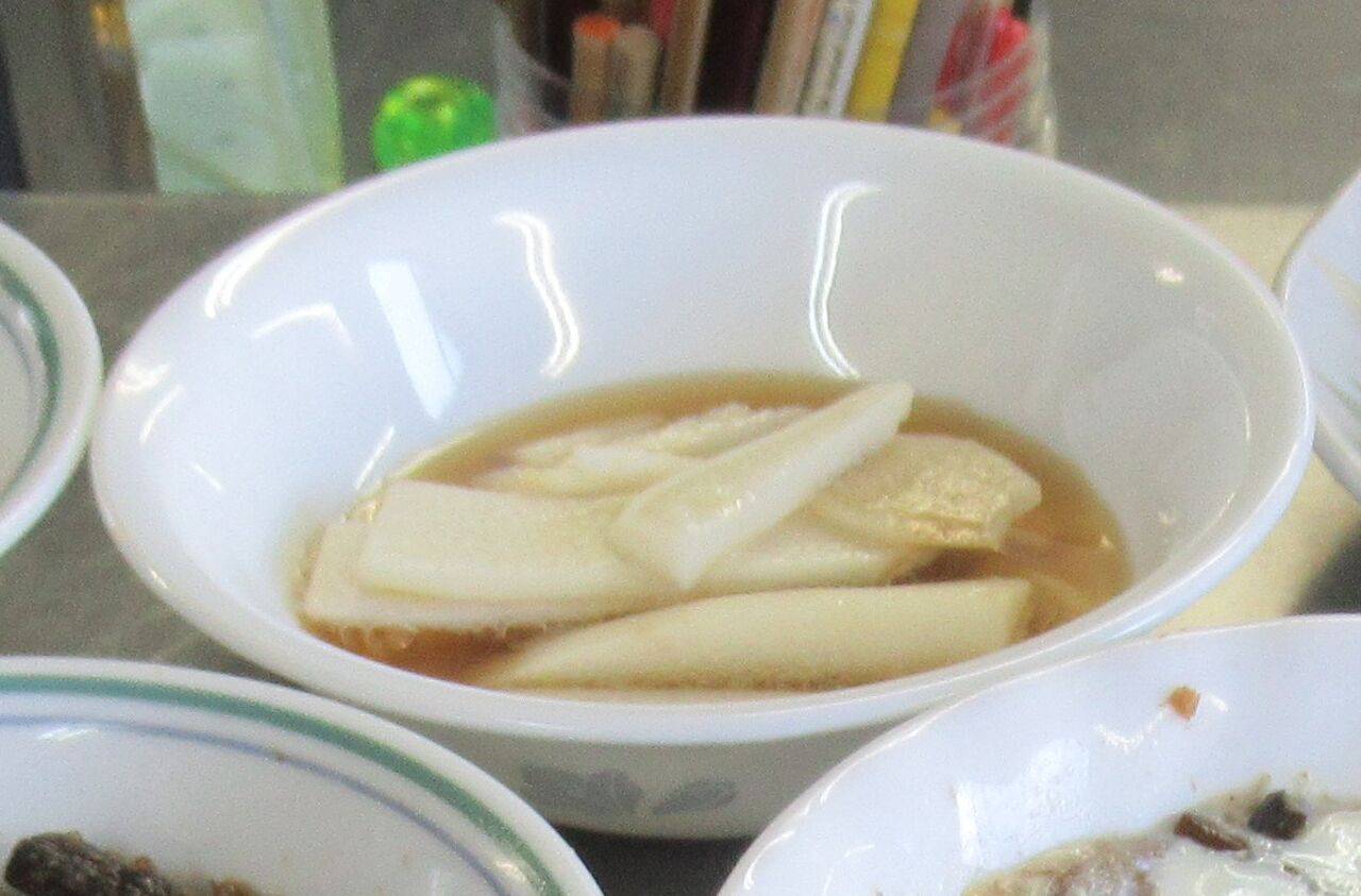 10月11日金曜日、今日のお昼御飯です。主菜は「鰯のから揚げ」副菜は「ところてん」「ゼンマイ煮ものの落とし卵」「長いもの出汁掛け」「胡瓜とカニ足」「大根の煮物」の中から選んでもらいます。汁物は「なめこと豆腐の味噌汁」になりました。