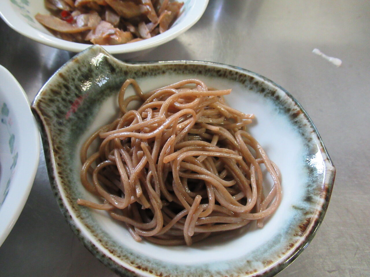 蕎麦をごま油で炒めオイスターソースで味付けしてあります。