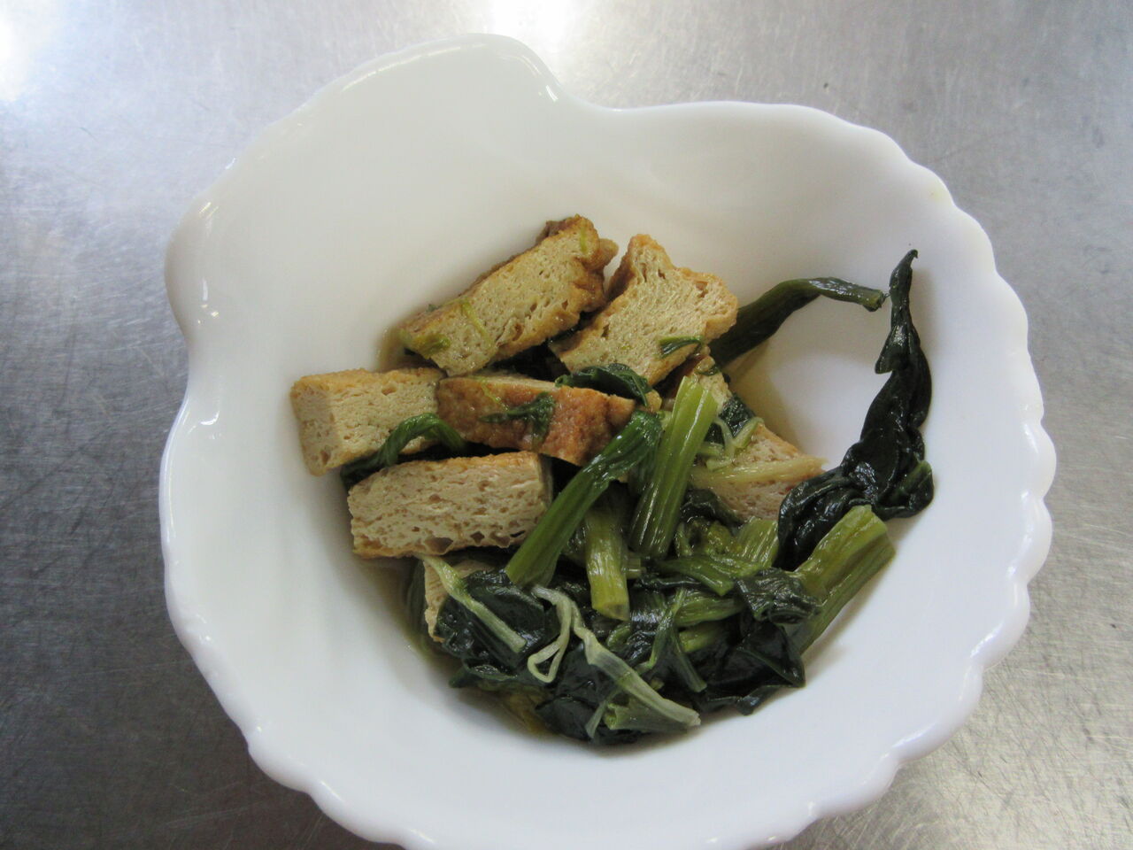ほうれん草と自家製の厚揚げを煮付けています。