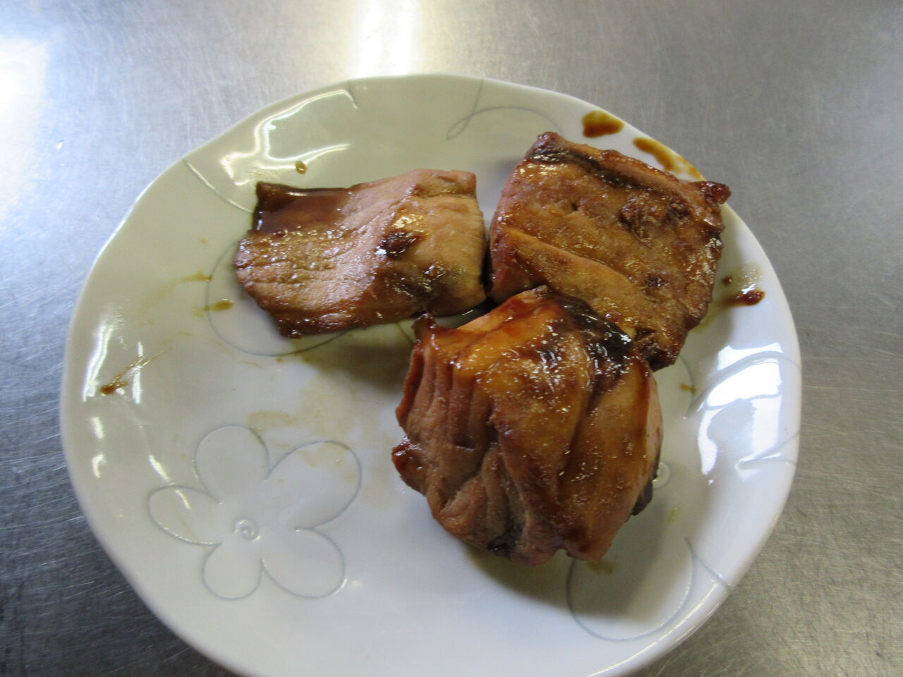 ダイエットの人にはカジキマグロのつけ焼きを作りました。空いているスペースは大根おろし用です。