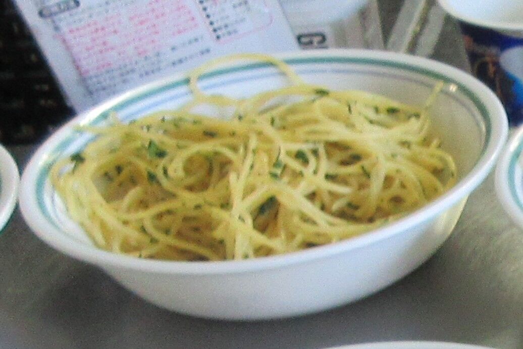 こちらはマーガリンとパセリで味付けしたスパゲティです。