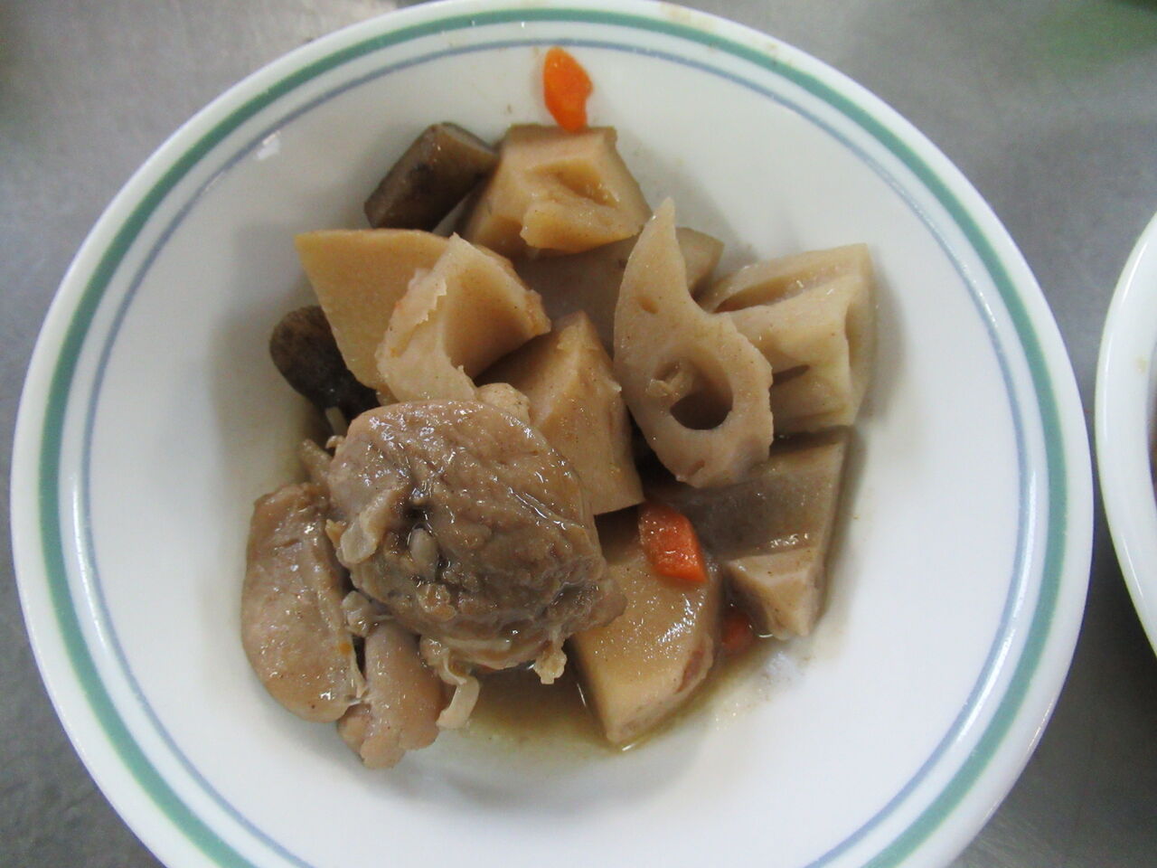 副菜になった筑前煮です。肉の割合が少なくなっています。
