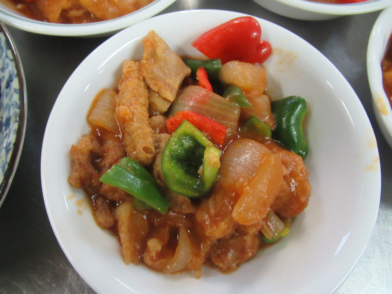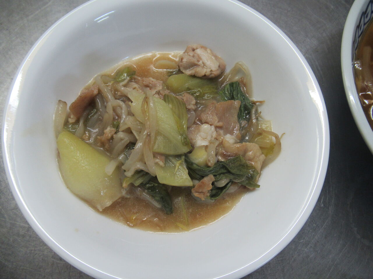 卵が嫌いな人には豚小間ともやし、青梗菜のあんかけを用意しました。