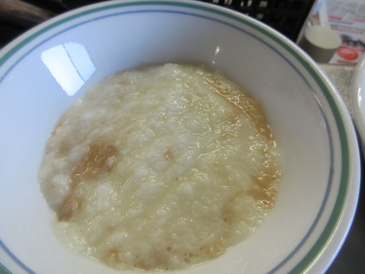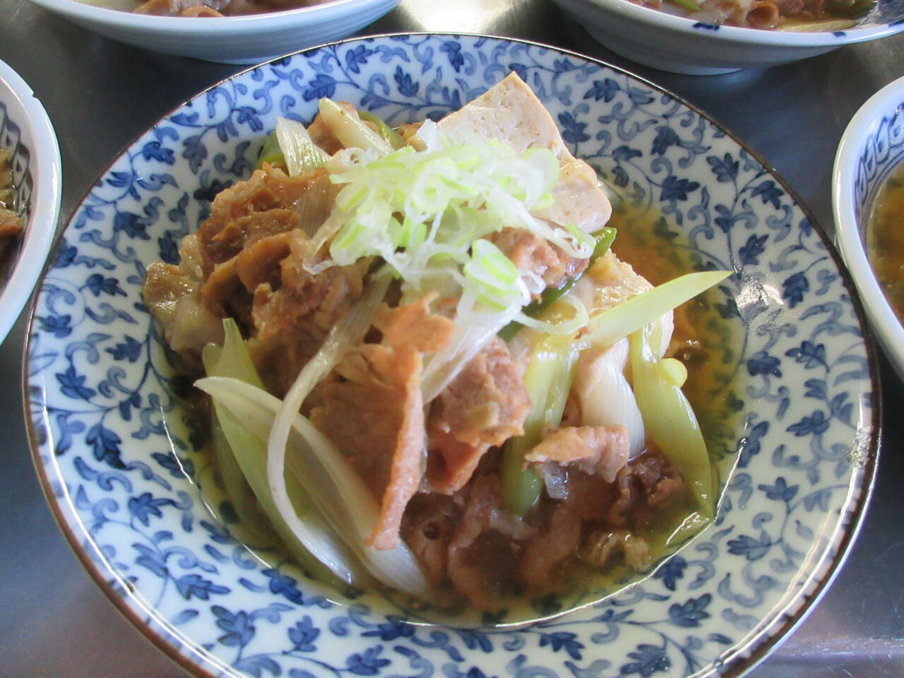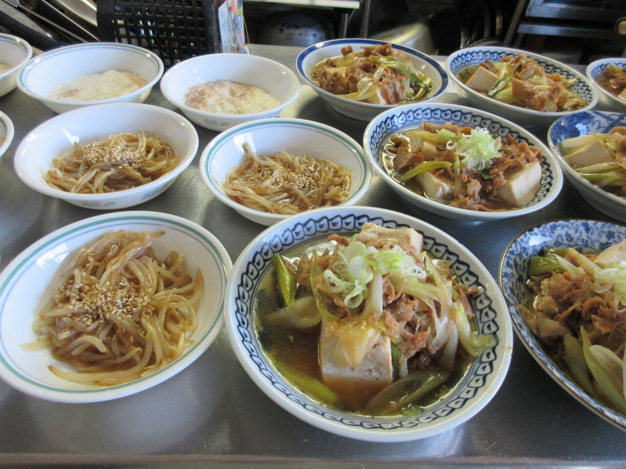 今日のカウンター上です。右には肉あんかけが加温プレートで温められています。左にはとろろが出してあります。